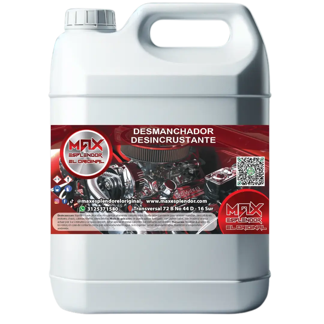 Desincrustante: líquido a base de ácidos inorgánicos altamente concentrados. Usado principalmente para remover manchas, percudido en